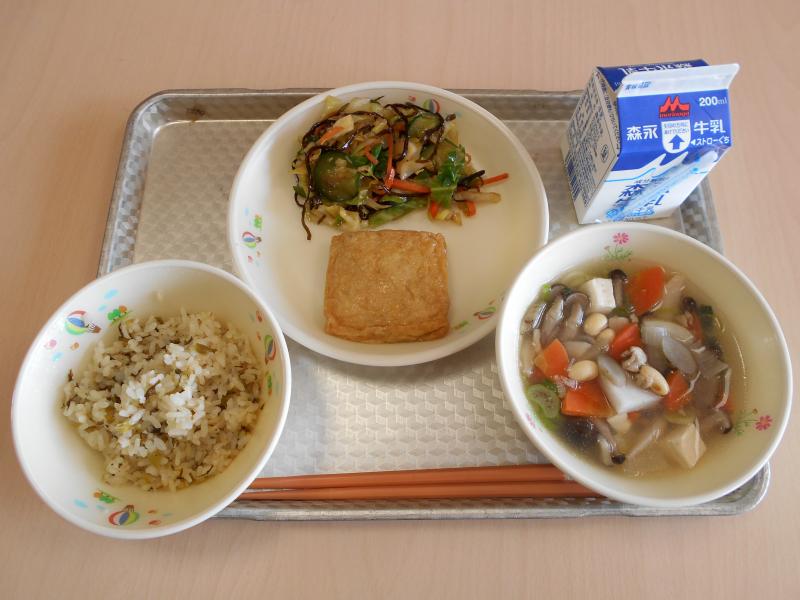 最後に本日の給食です。「メルルーサ」という魚の香味揚げでしたが、味付けが最高です。手の込んだおいしい給食を、いつもありがとうございます。