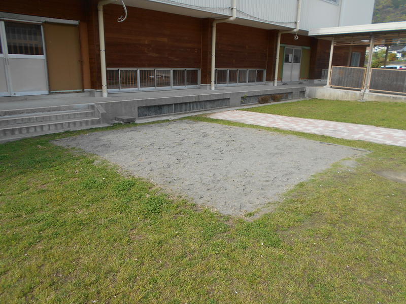 校舎の裏に回ると、今度は体格のいい先生方が、耕耘機やスコップを使って、砂場の砂を柔らかく耕されていました。明日から登校してくる子どもたちが怪我をしないように、泥だらけになりながら、雑草と戦っておられました。