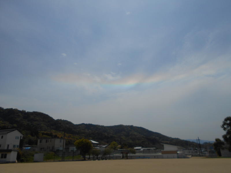 4月15日(水)から、ふたたび臨時休校となりました。世界的にコロナウィルス感染が拡大する中、全国的に蔓延し始め、熊本も人ごとではなくなり始めました。終わりの見えないこの閉塞感の中、「虹が出てます!」との声に一斉にベランダに出ました。すると、こんな晴天の日に、雨も降らない中、太陽の周りに確かに虹が出ていました。 自然の力は、人に猛威を振るうとともに、時にほっとさせてくれる時もあり、一人の人間のちっぽけさに気づかされる場面でもありました。