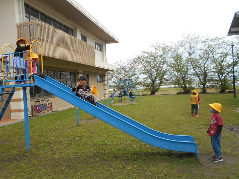 また、中庭でも低学年を中心に、大声ではしゃぎながら遊具で遊んでいます。「校長先生、ピース!!」と声かけてくれた女の子に、思わず大きくピースサインを出しました。