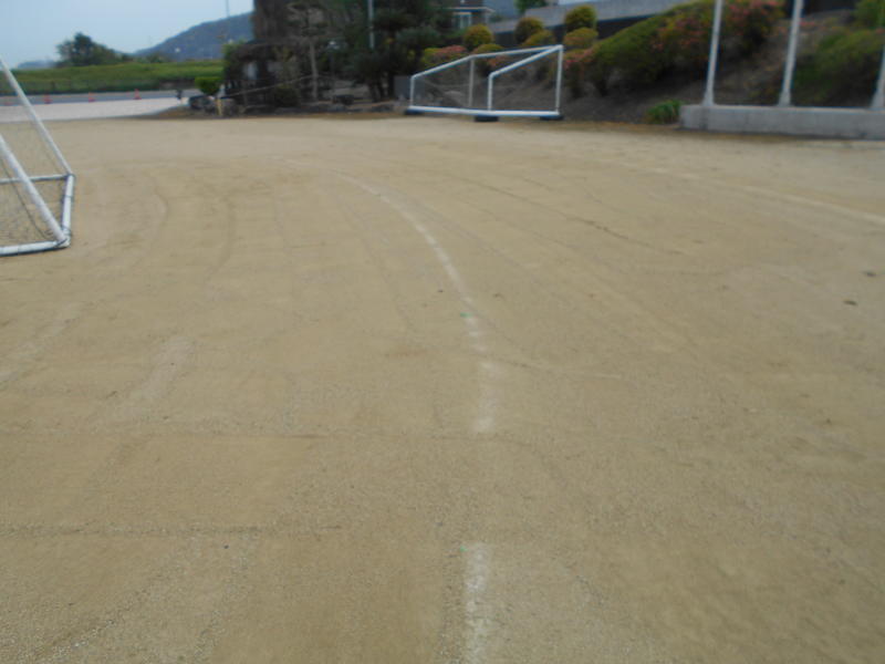 じつは、先日グラウンドにスパイクの足跡があり、そのままにされていました。このグラウンドはあるメガネの先生が大切にしていて、定期的に自分の車を使ってていねいにならしてあるきれいなグラウンドなのです。