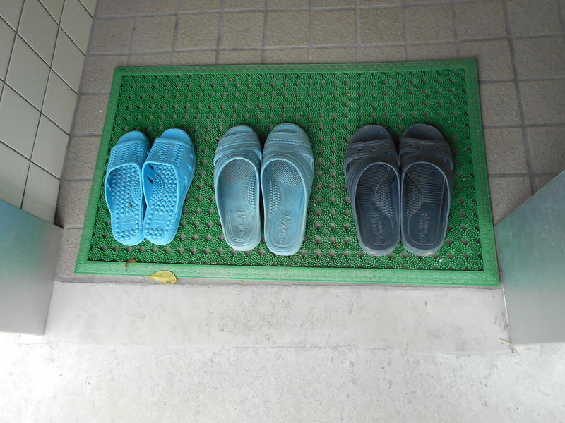 赴任したときからずっと気になっていましたが、いつ見ても常に、男女問わず必ずきちんとスリッパが並んでいます。子どもたちだけでなく、休み中などに校庭を訪れた人たちや、農作業のかたわらで、など多くの方が使用されているようです。