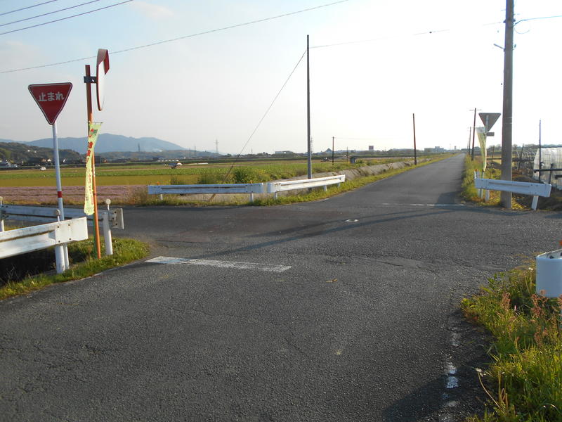この交差点は、半数以上の本校児童が登下校で通ってくるところです。一見、見通しがよいので危険性はないようですが、じつは、こんな交差点が「田園型交通事故」の多発するところだそうです。どちらのドライバーからも、お互いにスピードが止まって見える「コリジョンコース現象」が起こるそうです。