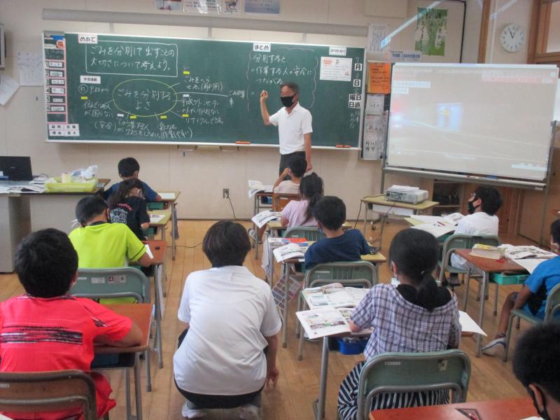 9月8日(水)の5時間目に4年生の研究授業が行われました。「自然災害からくらしを守る」単元の地震に関する資料から学習問題をつくる学習内容でした。担任の先生によりたくさんの資料が準備され資料をもとに子供たちが気づいたこと等を発表する姿が見られました。