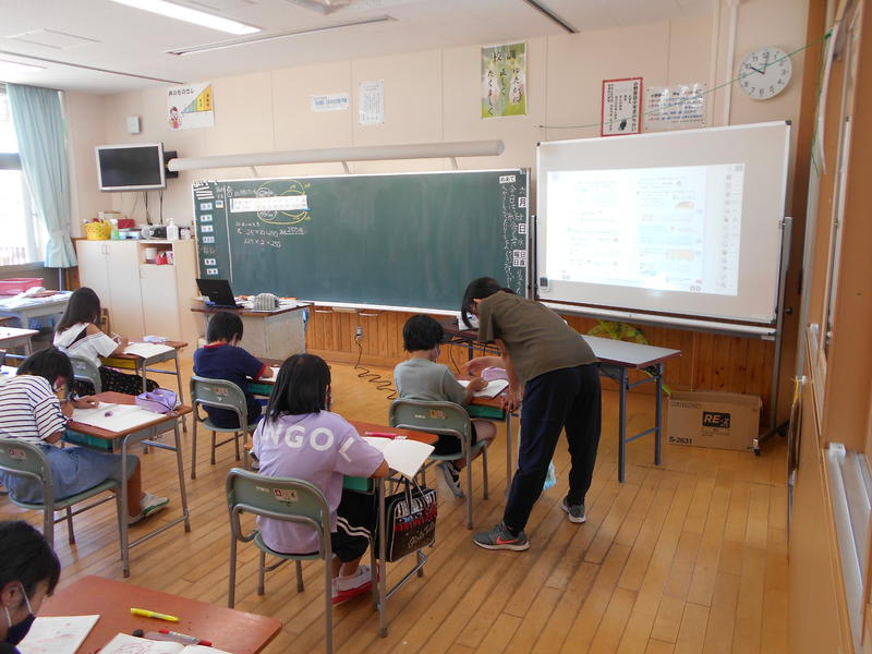 5年生は、算数の宿題の答え合わせでした。小数点の問題でしたが、みんなうまく理解できていたようでした。丸がどんどん増えると、勉強も楽しいですよね。ていねいな字できれいにまとめられています。