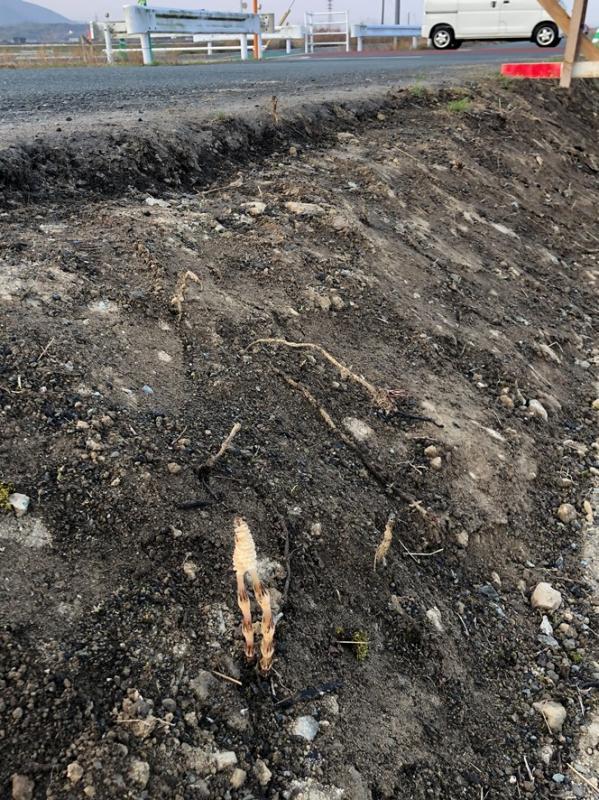 今朝は少し寒さが戻った感じでしたね。登校班を迎えに行く途中、転落防止柵の工事中の法面から、こんなモノが顔をのぞかせていました。春はもうすぐそこまで来ています。
