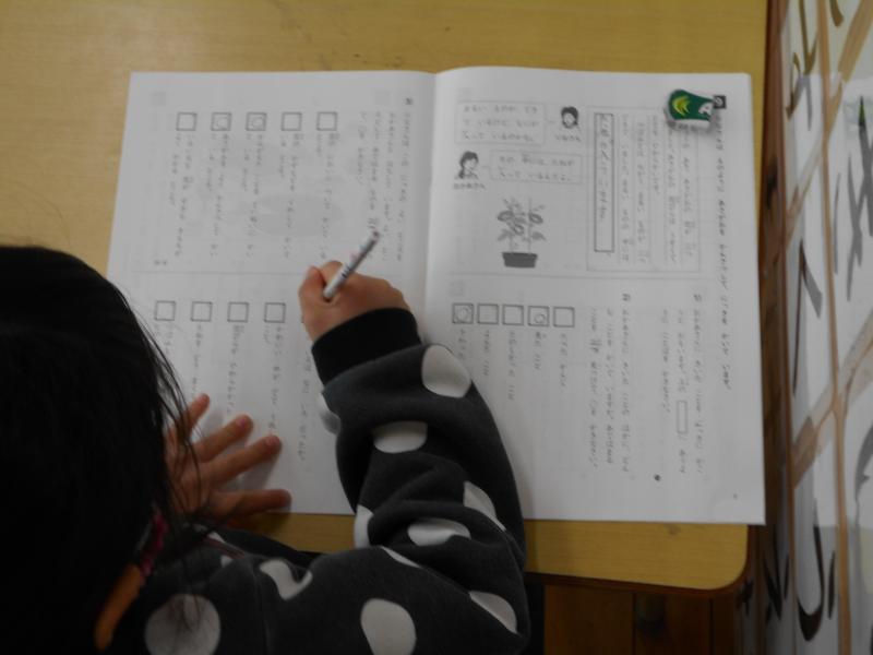 今日は国語のみですが、聞き取り問題があります。聞いた内容の中から、大切だと思うモノをしっかりとメモしているところです。明日は算数があります。みんな、Fightです!