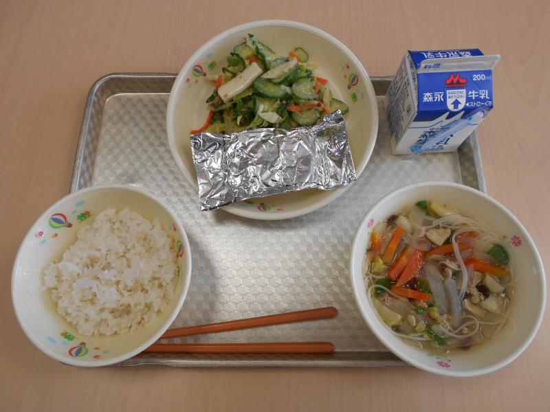 今日の給食です。ラーメンのあたたかさが、心にしみます。