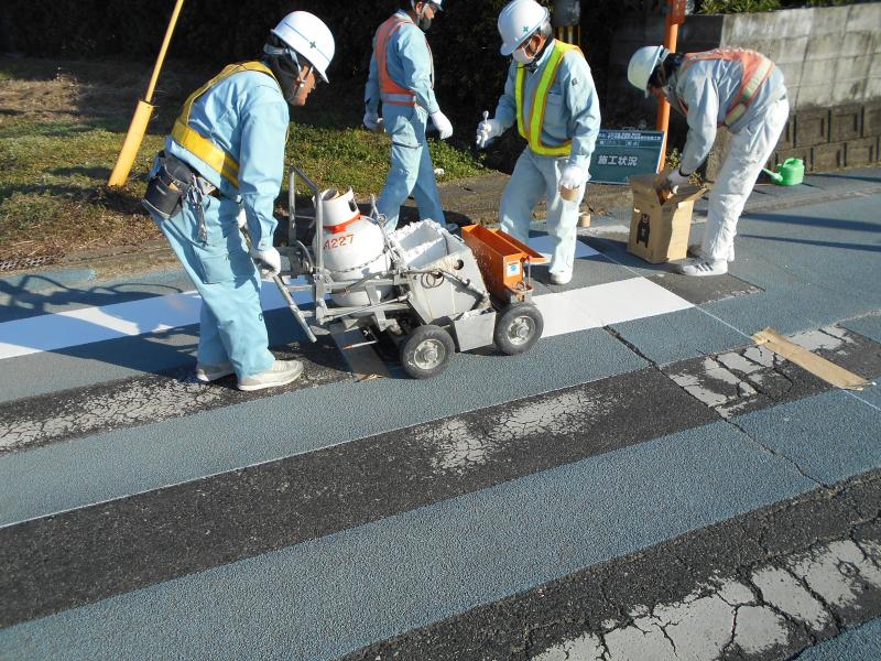わずか1時間もかからずに、手際よくきれいに引き直していただきました。これでより安全に子どもたちは横断できます。ありがとうございました。