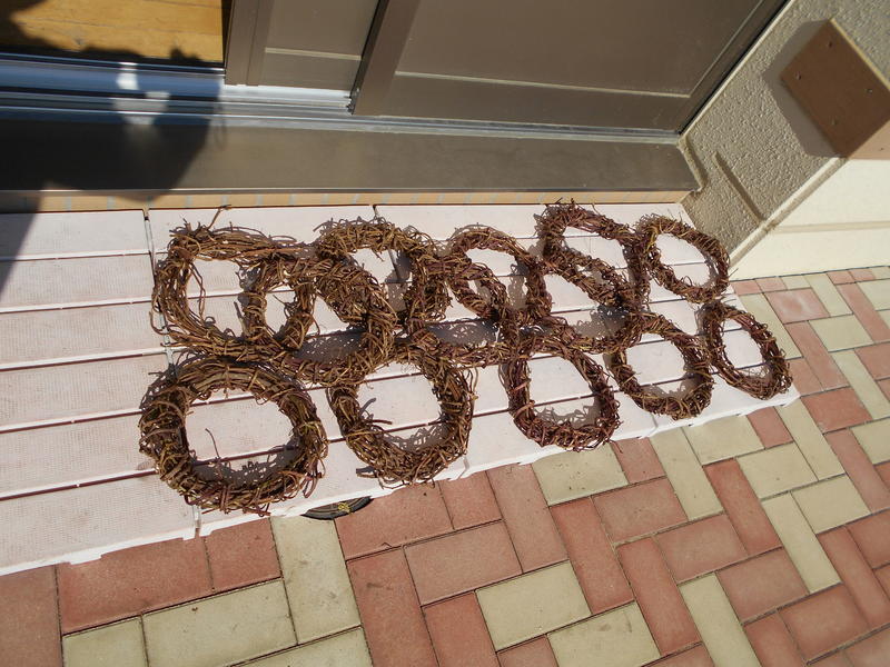 運動場から帰る途中、1年生の教室の外に、以前収穫した「芋の蔓」でできたリースが置いてありました。数日間の天日干しで、ずいぶんとリースらしくなってきました。これにたくさんの飾り付けをして行くそうですが、どんなものができあがるのか、今から楽しみです。