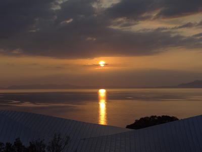 午後7時30分、きれいな夕日を眺めた後で待っているのは、「ナイトゲーム」です。4~5人組の班別に、広大な敷地内を「3つのミッション」をクリアしてゴールとなります。懐中電灯だけが頼りです。途中、何が出るかは楽しみです。無事帰れることをお祈りいたします。では、「行ってらっしゃ~い」。また、ゴールした後は「怪しい深夜の行進」?が繰り広げられました。