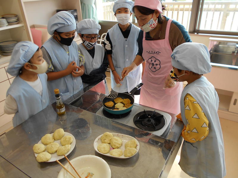 さて、本日は3年生で地元「小川町ヘルスメイト」の方々にご協力いただき、「サツマイモ餅」づくりを行いました。早めに来られてすぐに手際よく、芋の皮むきに取り組まれました。その中には、学校の畑で収穫された芋も含まれていたようです。