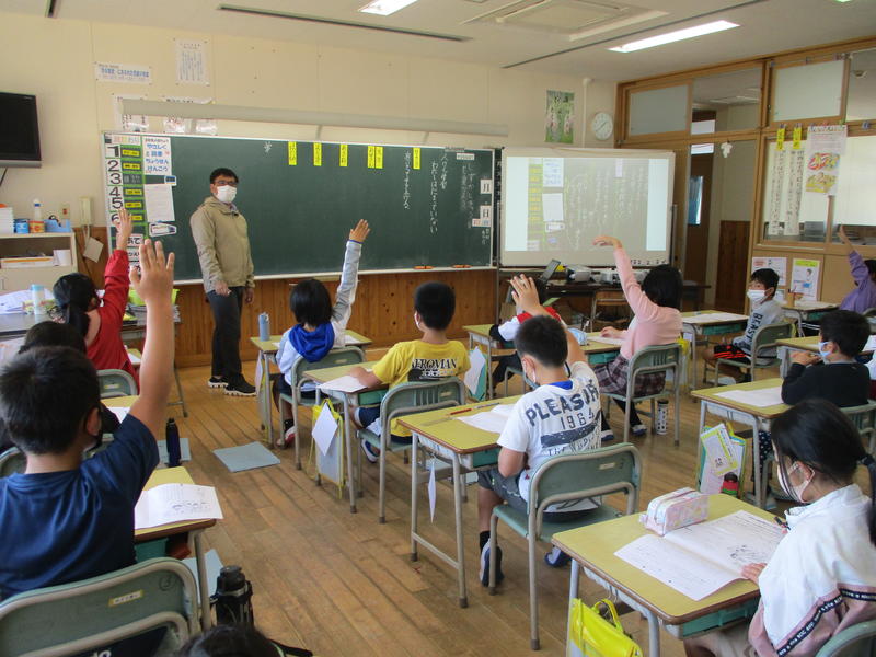 登場人物の気持ちになって、どうすれば楽しく過ごすことができるのかをみんなで考える授業でしたが、積極的に発表してくれました。
