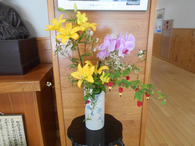 学校の玄関には、いつもきれいな花が素敵な花瓶に生けてあります。てっきり、「卒業式に使った花がよく咲いたままでいるな」と思い込んでいたら、なんと地域の方が定期的に生け変えていただいているとのこと。聞くところによると、自宅に咲いている花を活用して、毎週月曜日に来校されているようでした。殺風景な玄関が、華やかに、また心和む雰囲気に変わります。