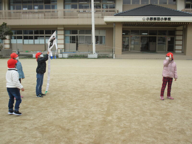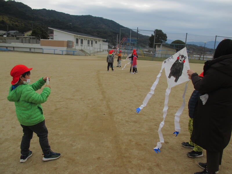 今日の出来事です。掃除の時間にいつも校長室を掃除してくれる6年生の子が5年生の子に来年度に向けて、校長室の掃除の仕方を教えていました。また、5時間目には3年生が自分たちで作った小川だこをとばしていました。なかなか難しそうでした。