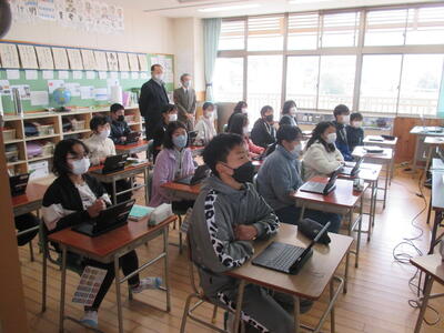本日の業間の時間に児童会の総務委員会の新旧引継ぎ式がありました。総務委員だけを会議室に集め、他の児童は各教室でズームで視聴参加しました。6年生の挨拶や新総務委員からのお礼の言葉などがありました。