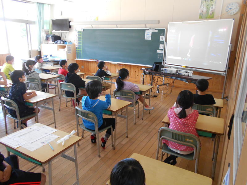 さて、本日は来週からの本格的な学校再開に向けて、どの学年も本格的に授業が開始されました。1年生ではひらがなの学習が始まりました。むずかしい「む」も大変よくかけていました。