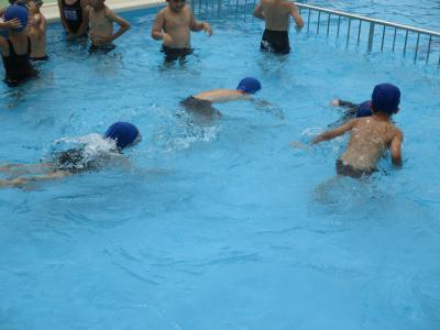 今週の月曜日から、水泳の授業が始まっています。しかし、雨天の日も多く、まだ、できない日も多くあります。今日は、天気も良く、水泳の授業ができていました。低学年の授業におじゃましたところ、水遊びの授業を行っていました。水に慣れたり浮く運動を行っていました。顔つけやバブリング、クラゲ浮きやダルマ浮きを行っていました。2年生になるとさすがに上手な子がたくさんいましたが、1年生でもできる子がいました。子供たちはとても気持ちよさそうでした。