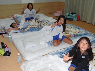 青年の家に帰ると、夕食とお風呂が待っています。海東小と時間を分けて対応するので、待っている間は各部屋で楽しく過ごしているようでした。