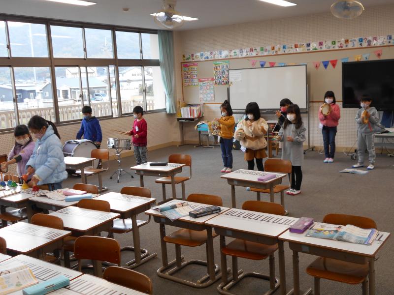 1年生の音楽の授業ですが、合唱等の内容は避けて、楽器の演奏になっています。当然、常に換気しながら、「吹く」楽器ではなく、「叩く」楽器の演奏となっています。みんな、キラキラ星の演奏、とても上手でしたよ。