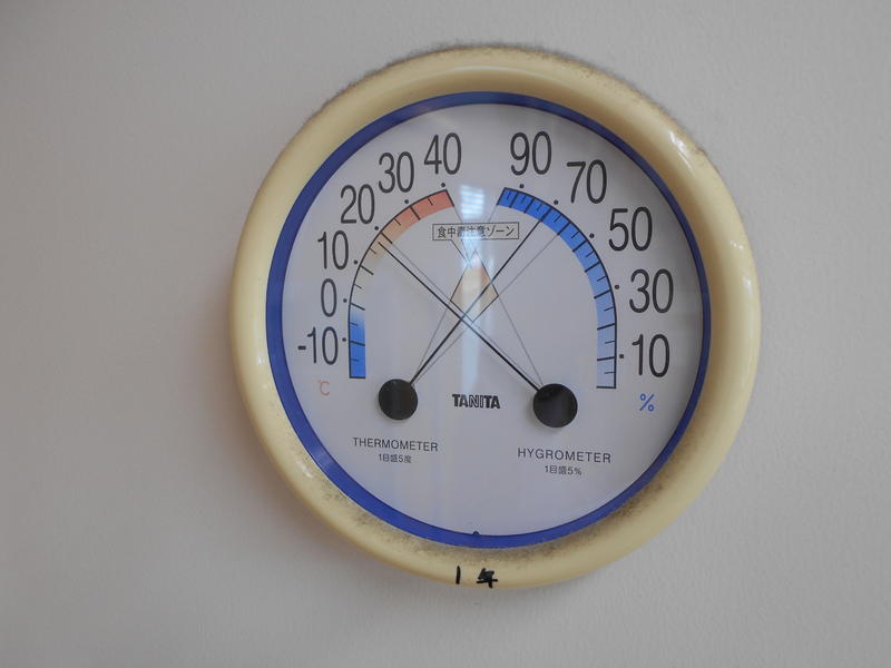 教室内は、気温18度・湿度70%の中で頑張っていました。(午前11時頃)