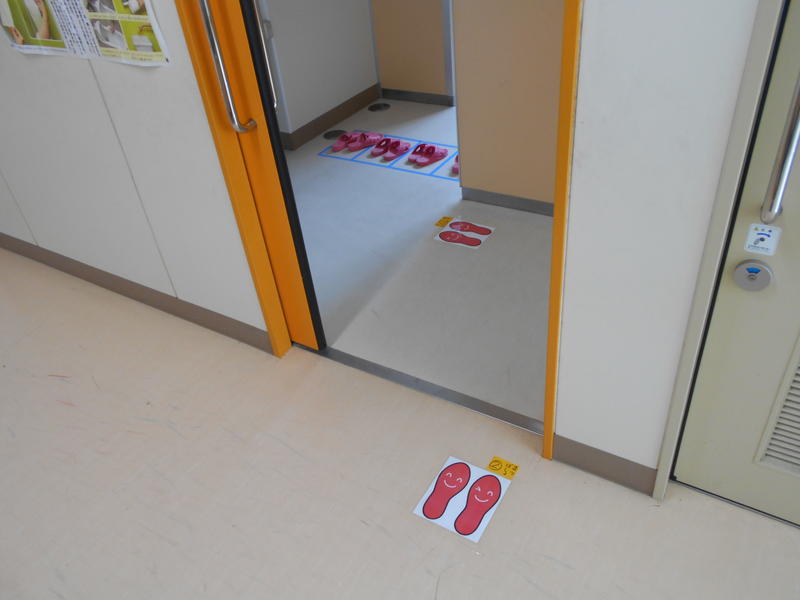 今度はトイレでのソーシャルディスタンスです。ちゃんと立ち止まって順番を待ちます。