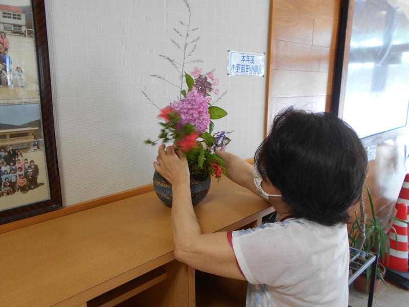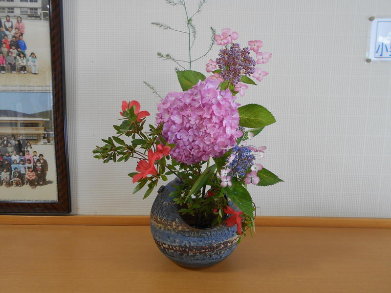 勝木様に、学校再開に合わせて花を生けていただきました。すてきな花器に・・・感謝です。