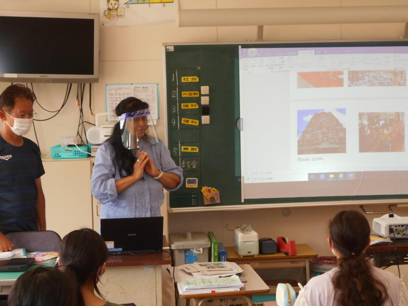 さっそく6年生の授業で、自己紹介とスリランカについてのお話がありました。ここでもフェイスシールドが活躍します。