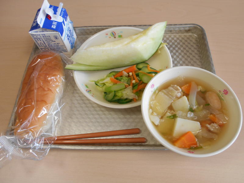 昨日はメロンがドンと出てきました。暑い中、おいしく食べられました。