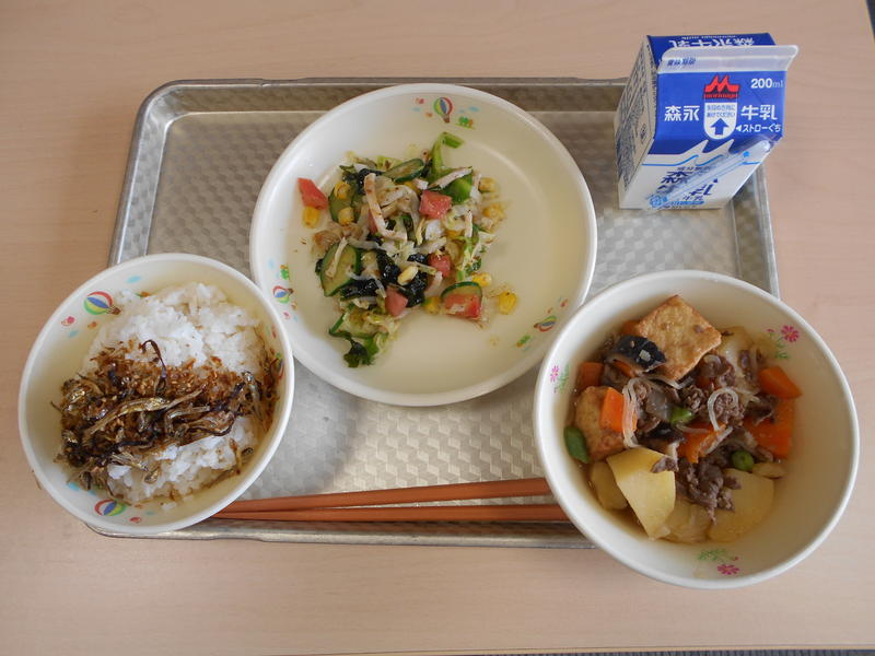 ここで、今日の給食、「にくじゃが」です。甘くもなく、濃すぎす、絶妙な味付けでした。