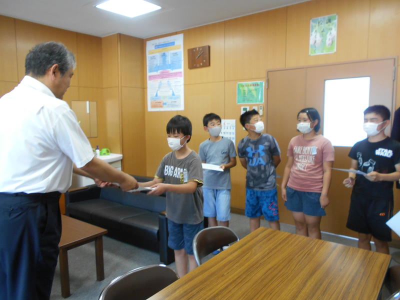 今日、お昼休みに、私の方から直接、7人の4.5.6年生に委嘱状を渡しました。これは、学校便りを学校評議員さんや区長さん等に、私の代わりに届けてもらうよう、お願いしたものです。