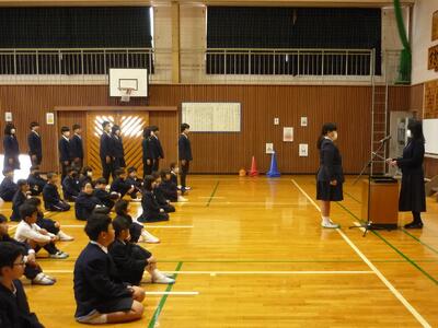 実行委員会の司会のもと、今月の生活目標の発表と各委員会の委員長から「1年間の目標」と「取り組んでいくこと」の発表が行われました。