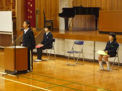 1年をふりかえっての意見発表(6・4・2年代表)・・・
