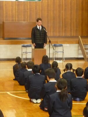 3年間、ALTとして大浜小学校の子供たちに、外国語を教えてもらったニック先生とのお別れの式を行いました。