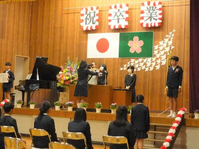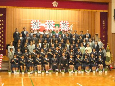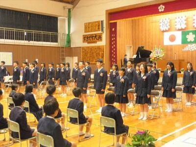 卒業生27人全員揃っての素晴らしい卒業式となりました。これまでの練習の成果をしっかりと出した立派な姿でした。中学校での活躍を祈っています。