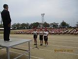 大浜小学校の児童の選手宣誓で始まった陸上記録会。