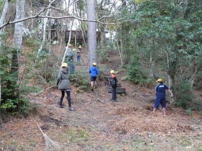 忍者の森再生プロジェクトで委員会の方が斜面などをきれいにしてくださっています。
