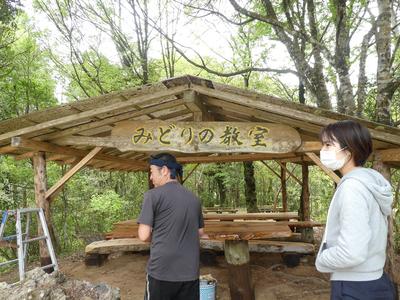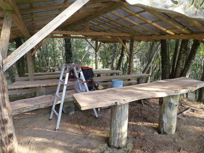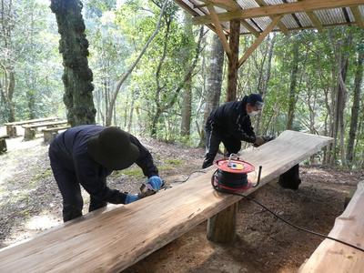 みどりの教室の机や椅子や屋根を、梅田先生がカンナできれいにしてくださいました。