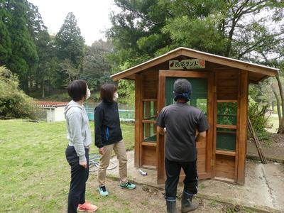 環境ボランティアの竪野さんが、鳥の巣箱の試作品を作ってきてくださいました。