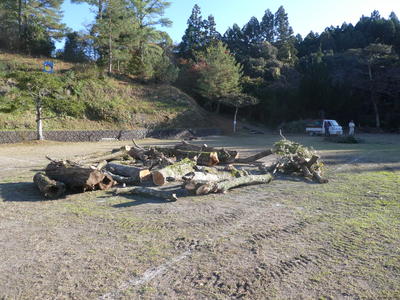 枯れている木を伐採し、鬼火焼きの場所に集めてくださいました。