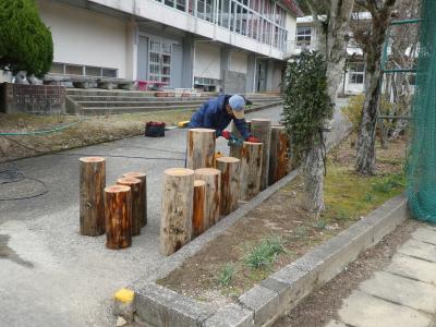 5・6年生が、応援団の方と一緒に丸太を埋める作業をしました。忍者の森と第二グラウンドの二か所です。