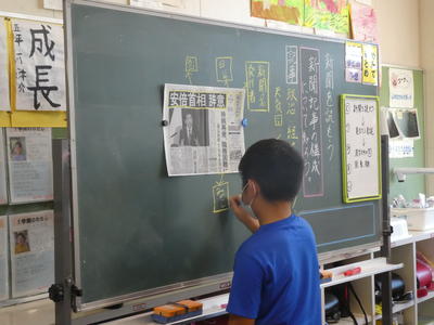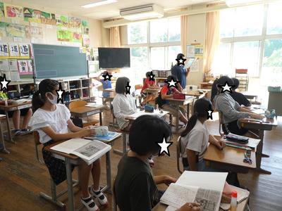 3・4年生は国語の授業で夏の内容が書かれた新聞記事を使って、夏の文章や俳句を作りました。
