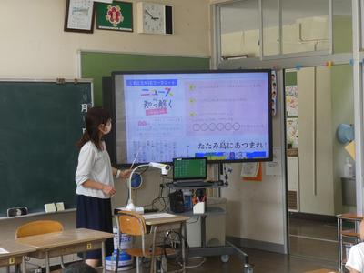 普段の活動内容や、NIEクイズをロイロノートで作成しての発表です。