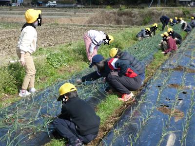 今日は3・4・5年生でサラダ玉ねぎの草取りがありました。