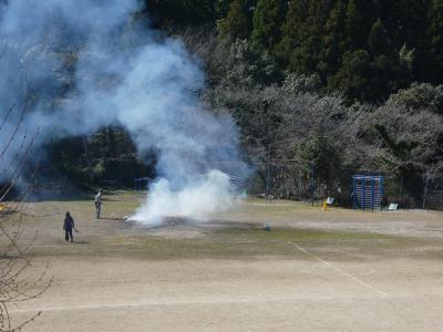 大野小の忍者の森の枝を燃やした熱で、焼き芋を作りました。