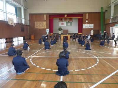 今日は雨で遠足はできませんでした(月曜に延期です)が、体育館で6年生を送る会がありました。