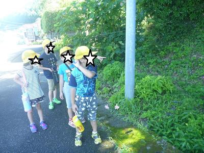 1年生は朝の涼しい時間に町探検をしました。