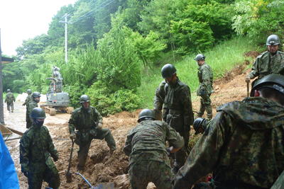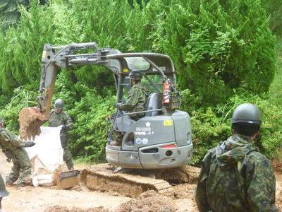 月曜日から給食車が通る場所ですので、自衛隊の方により、緊急に工事をしていただいています。