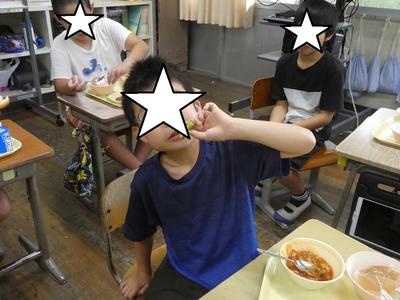 給食は対面にならないように、話し合いやペア学習も少し離れて行ったりしています。