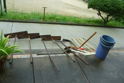 今週、先生方は交替で佐敷小や佐敷中の復旧作業をしていました。